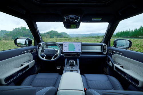 山海T2的内饰彰显“精奢力量派”的设计风格,堪称百万级的硬派设计。硬派矩阵布局,尽显干练果敢。高订全饰面板激光雕刻,金属质感,尊贵精致,豪华氛围扑面而来。摩登麂皮座椅,环保时尚,触感细腻,亲肤柔软易打理。更有头等舱副驾,248mm腿部空间,符合人体工学最舒适躺平尺寸设计,64英寸全景大天窗,带给现场媒体老师们敞篷级享受,让露营体验“精奢”起来。