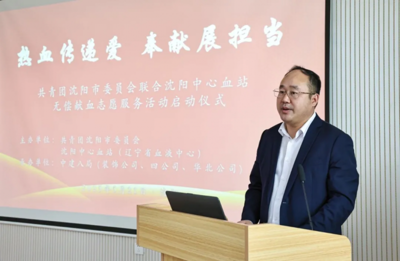 中建八局装饰公司北方分公司执行经理陈显令表示,八局青年要争做无偿献血的先锋队,亮出身份、冲锋在前,传递生命希望;要争做爱心传递的宣传员,积极普及献血知识,带动更多青年加入献血行列;要争做文明风尚的引领者,以青春之名践行社会主义核心价值观,汇成守护生命的磅礴暖流,让沈阳因奉献而更加美好!